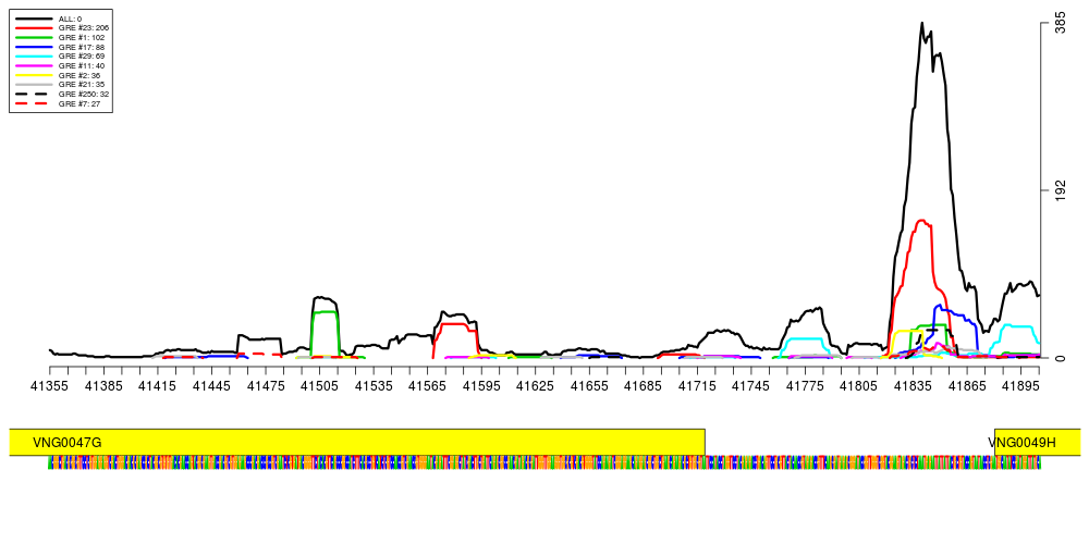 | Halobacterium salinarum sp. NRC-1 | VNG0049H | VNG0049H | NP_279207.1 | Vng0049h | 41880 | 42659 | + | NC_002607.1 |